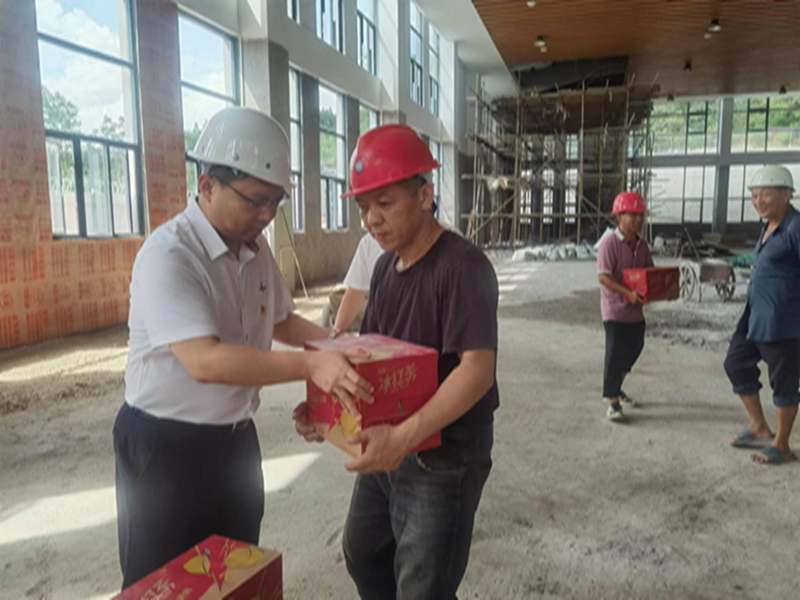 黨委副書(shū)記、總經(jīng)理、支部指導員江中同志為工人送上防暑用品