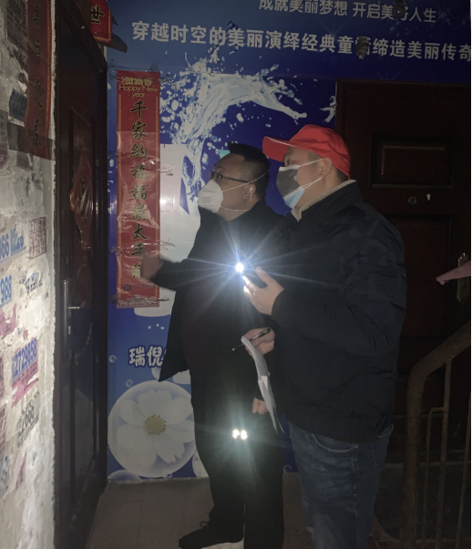 2月4日晚,黨委委員、紀委書(shū)記劉文帶隊排查白天不在家的住戶(hù)