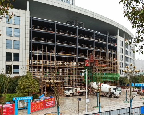 走進(jìn)市民服務(wù)中心D棟施工現場(chǎng),只見(jiàn)泵車(chē)正在澆筑六樓混凝土,3臺攪拌車(chē)有序作業(yè)、升降機上下忙碌,工人們戴著(zhù)口罩卯足干勁,工地上呈現一派熱火朝天的景象?!盀榱粟s進(jìn)度,我們從其他項目臨時(shí)借調人員過(guò)來(lái)?!?ensp;項目負責人向躍蘭告訴記者,現在工地上有40多名工人,他們在抓緊施工的同時(shí),關(guān)閉員工食堂,向政府食堂報餐,實(shí)行“盒飯打包、分散就餐”,確保施工、防疫“兩不誤”。