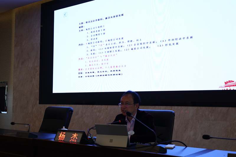 為推動(dòng)公司“清廉國企”建設,加強依法治企能力,強化全員廉潔從業(yè)意識,2022年4月29日上午,懷化市城市建設投資有限公司舉辦了“依法治企開(kāi)新局,廉潔從業(yè)促發(fā)展”專(zhuān)題教育講座,公司黨委委員、紀檢書(shū)記、監察專(zhuān)員劉文主持講座。