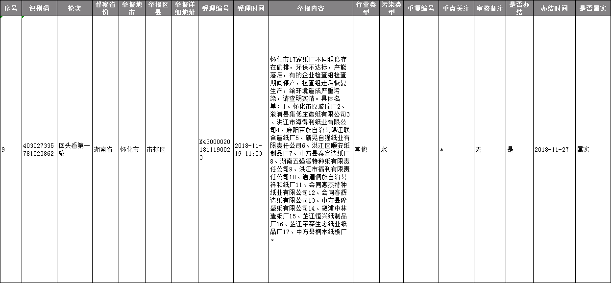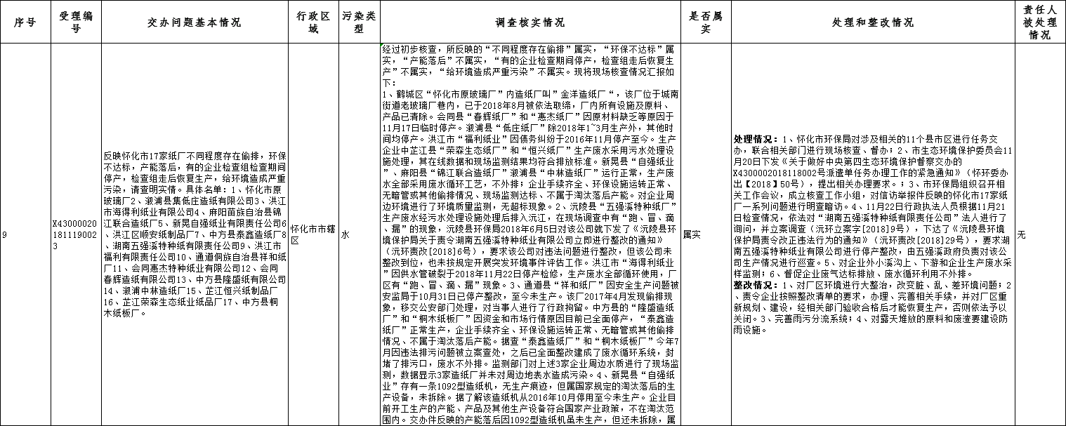 中央環(huán)保督察“回頭看”:懷化市17家紙廠投訴處理結果