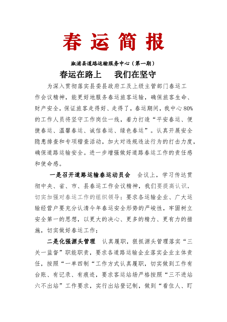 溆浦縣道路運(yùn)輸服務(wù)中心春運(yùn)簡報(bào)(第一期)