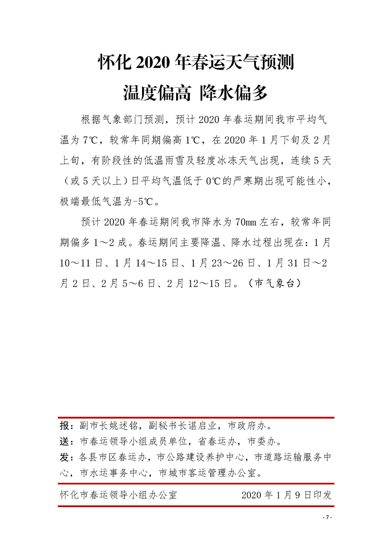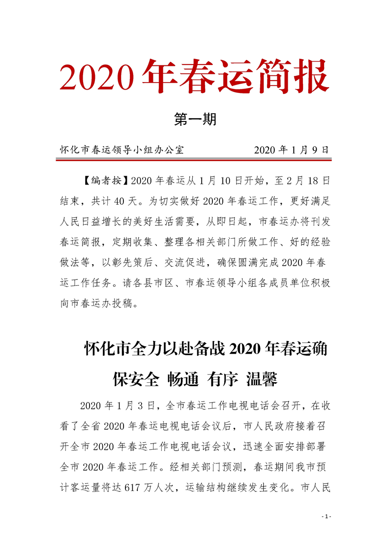 懷化市2020年春運(yùn)簡報 第一期