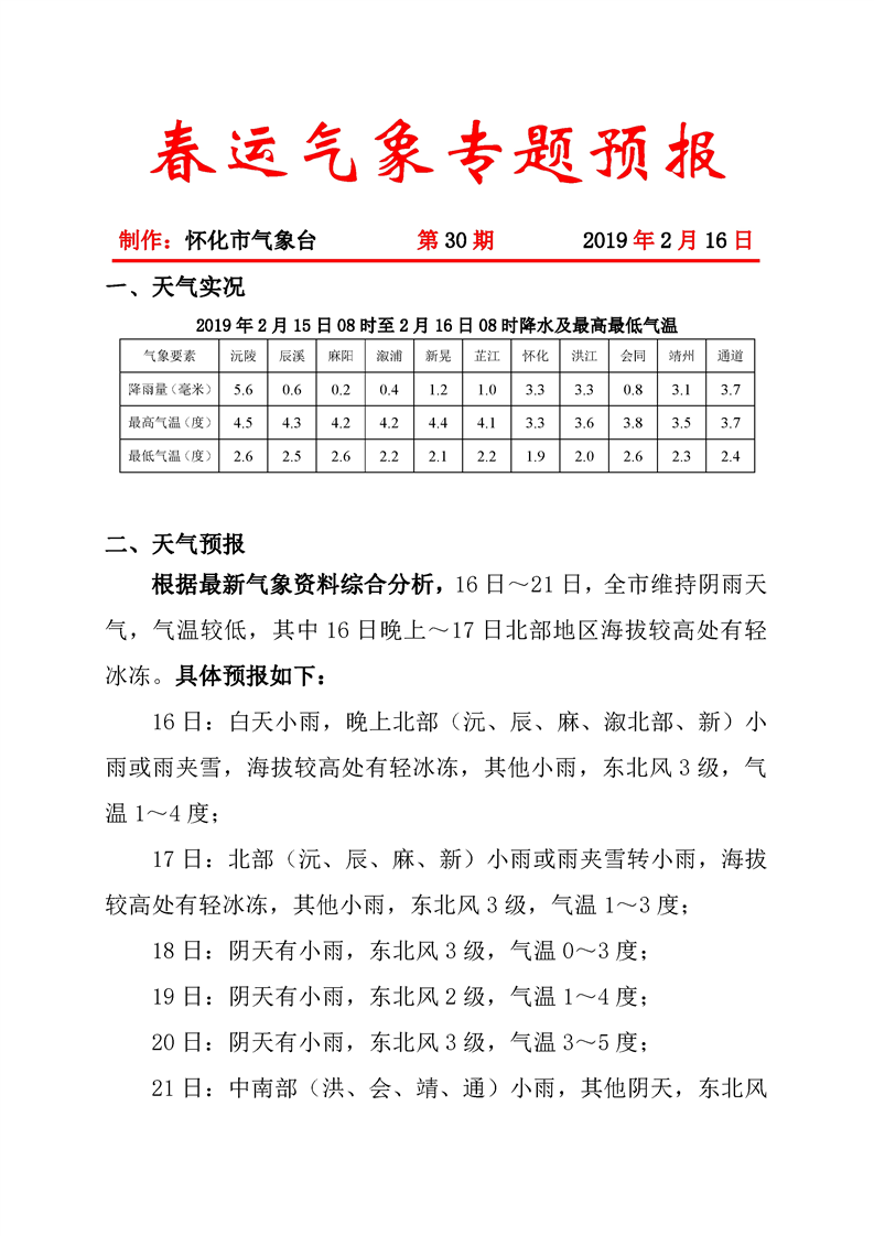 春運氣象專題預(yù)報(第30期)