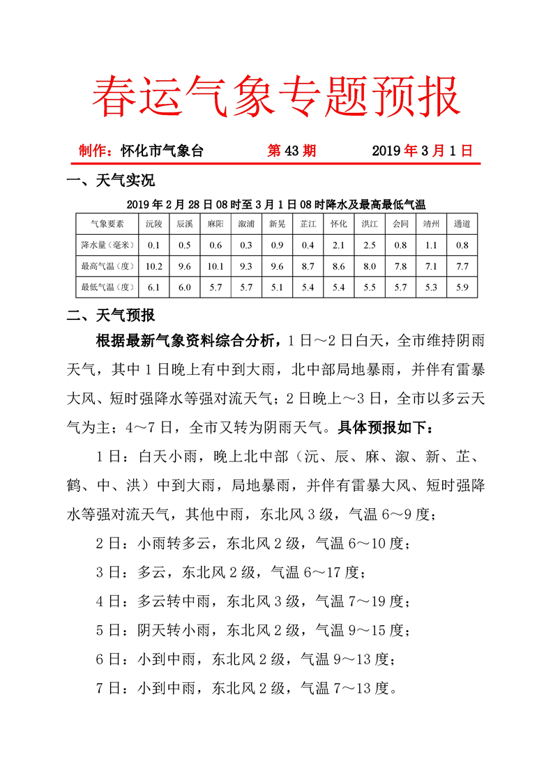 春運氣象專題預報(第43期)