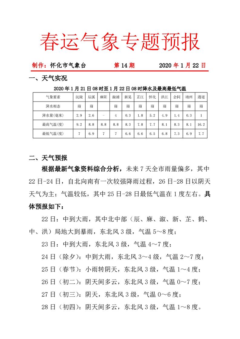 春運(yùn)氣象專題預(yù)報(bào) 第14期