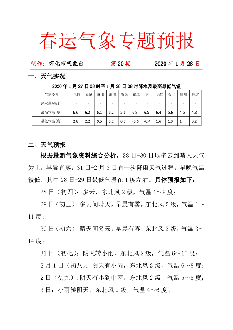 春運氣象專題預報 第20期