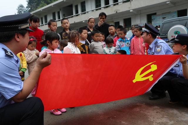 慶六一,辰溪民警與留守兒童共同升國旗