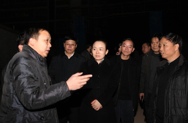 圖為李暉市長(zhǎng)聽(tīng)取施工現(xiàn)場(chǎng)負(fù)責(zé)人情況說(shuō)明