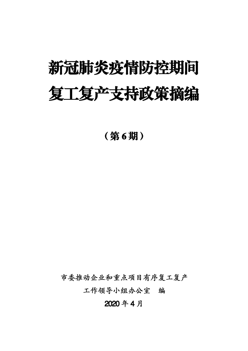 新冠肺炎疫情防控期間復(fù)工復(fù)產(chǎn)支持政策摘編(第6期)