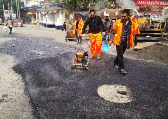 養(yǎng)護(hù)人員正在進(jìn)行路面坑槽修補