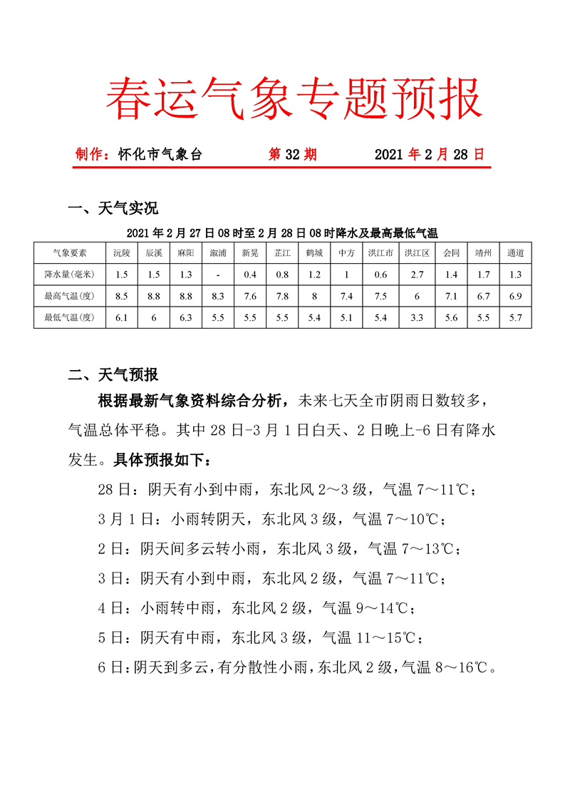 春運期間氣象專題第32期