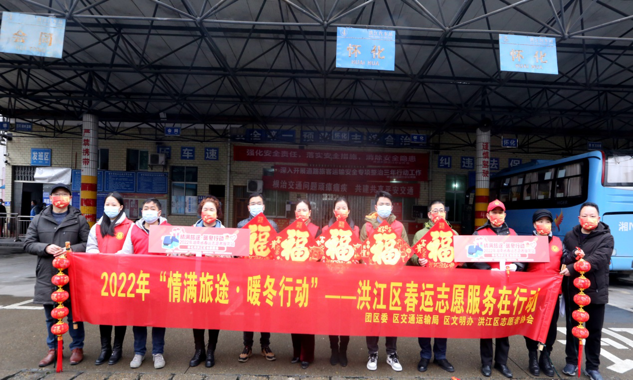 1月17日春運第一天清早,共青團(tuán)洪江區(qū)委員會、洪江區(qū)交通運輸局、洪江區(qū)文明辦、洪江區(qū)志愿者協(xié)會一行10余名志愿者來到懷運集團(tuán)洪江分公司開展2022年“情滿旅途·暖冬行動”洪江區(qū)春運志愿服務(wù)活動。
