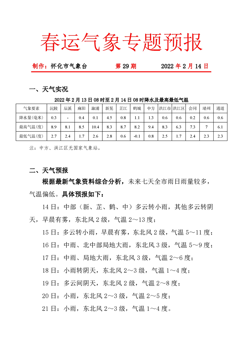 春運(yùn)氣象專(zhuān)題預(yù)報(bào) 第29期