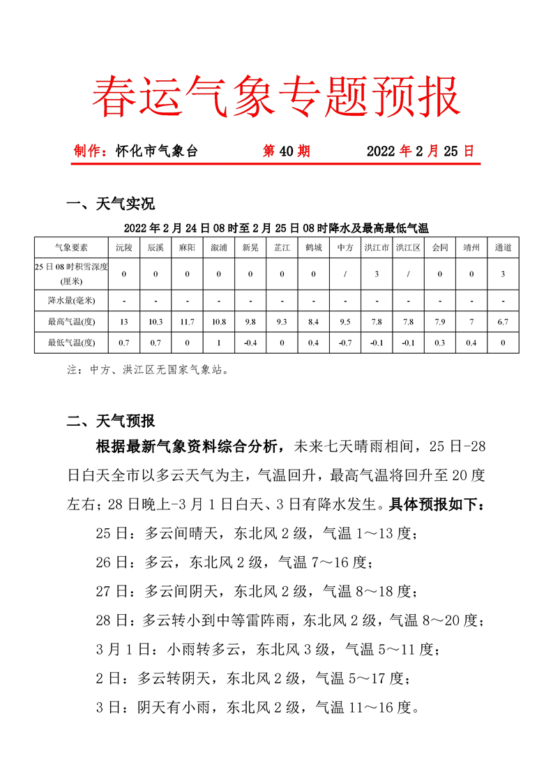 春運(yùn)氣象專題預(yù)報(bào) 第40期