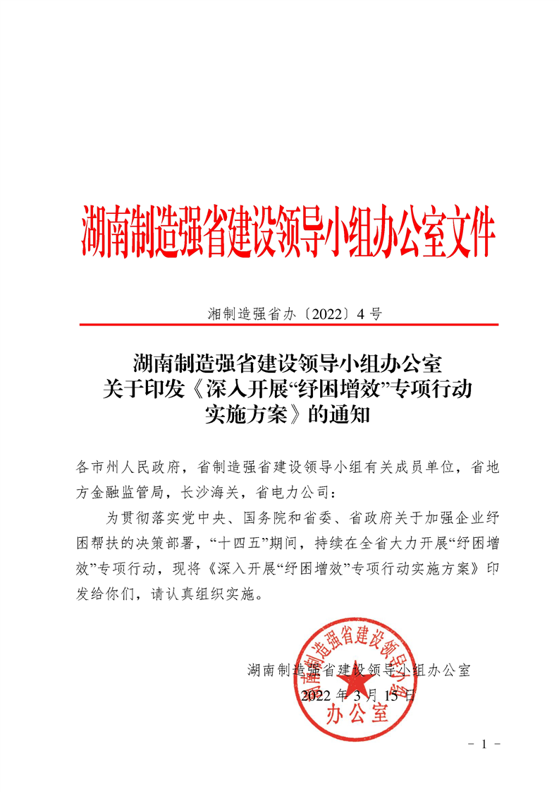 湖南制造強(qiáng)省建設(shè)領(lǐng)導(dǎo)小組辦公室關(guān)于印發(fā)《深入開展“紓困增效”專項(xiàng)行動(dòng)實(shí)施方案》的通知