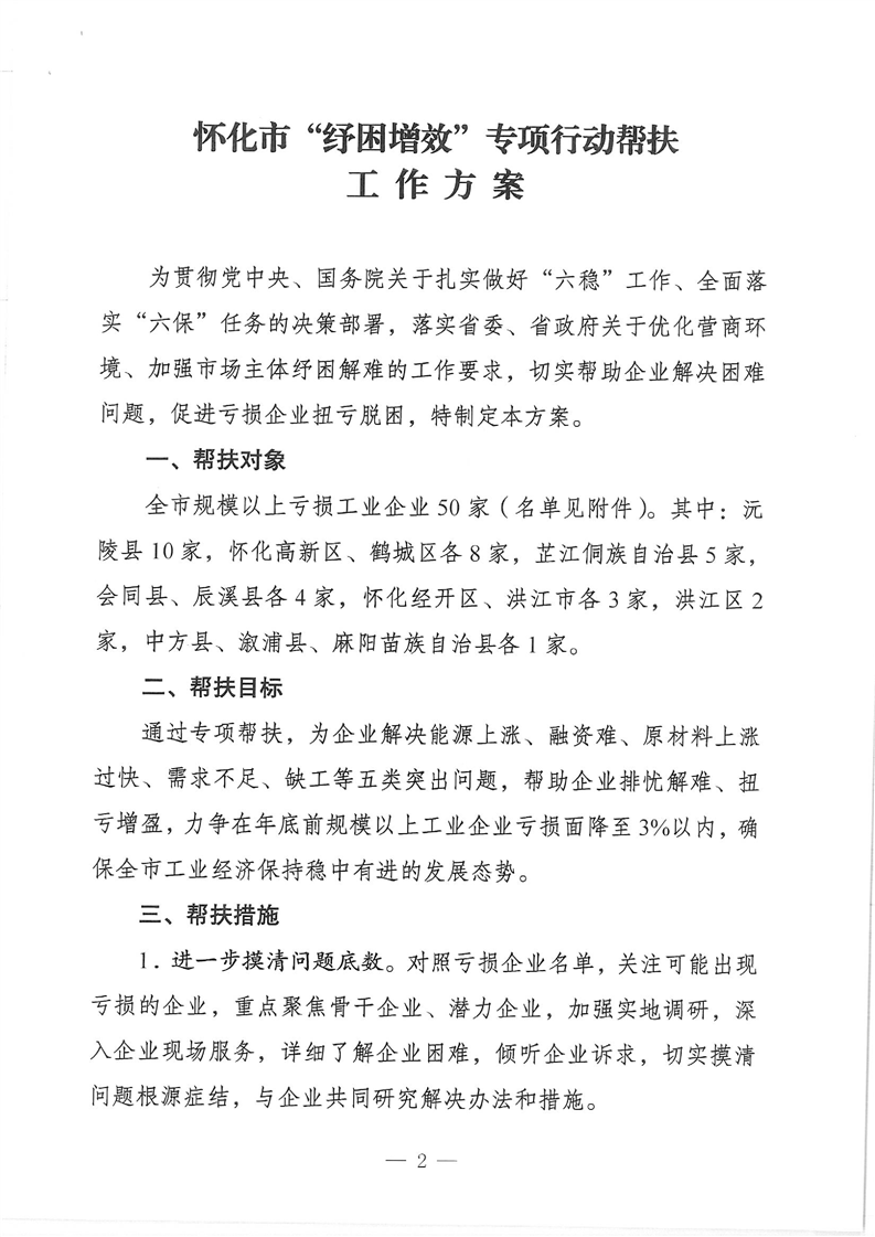 懷化市“紓困增效”專(zhuān)項(xiàng)行動(dòng)幫扶工作方案(懷辦發(fā)電〔2021〕70號(hào))