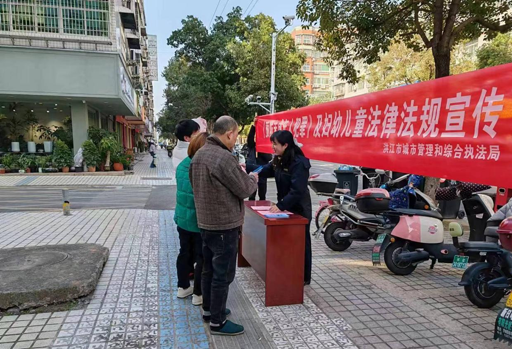 12月23日,洪江市城管局在黔城鎮(zhèn)玉壺路開展了關愛婦女兒童合法權(quán)益普法宣講暨政務公開主題日活動。