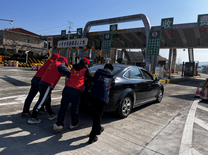 “呲”的一聲巨響,在洪江收費站廣場,一輛小車突發(fā)故障,無法正常行駛。在收費廣場“路燈”志愿者立即飛奔上前,了解情況后快速將車輛推到安全地帶,幫忙聯(lián)系修理廠,收費站現(xiàn)場秩序井然。