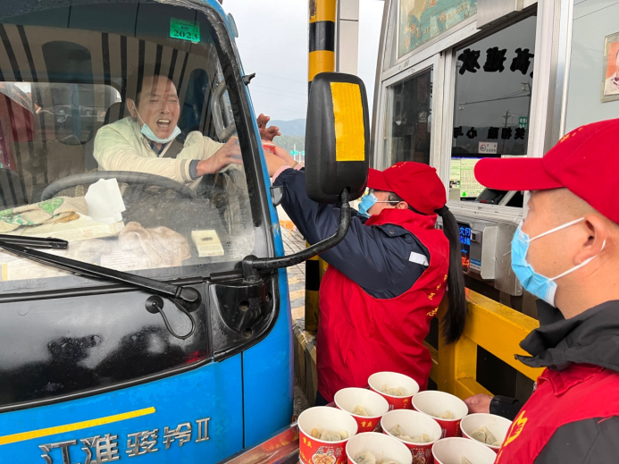 小年一大早,靖州收費(fèi)站廚房里就忙碌起來,洗菜、切菜、剁肉餡、和面、包餃子,大家忙得不亦樂乎??斓街形鐣r(shí),一盤盤熱氣騰騰的餃子出鍋后,第一時(shí)間被送到收費(fèi)現(xiàn)場(chǎng)。“師傅,今天是小年夜,吃完水餃暖暖胃?!薄奥窡簟敝驹刚邔⒁煌胪胨溗徒o司乘的同時(shí),也送去了一份新年祝福?!斑@是我今年吃過最好吃的餃子,吃在嘴里、暖在心里,是家鄉(xiāng)的味道……”一位從深圳回家過年的司機(jī)朋友豎起大拇指連連稱贊。