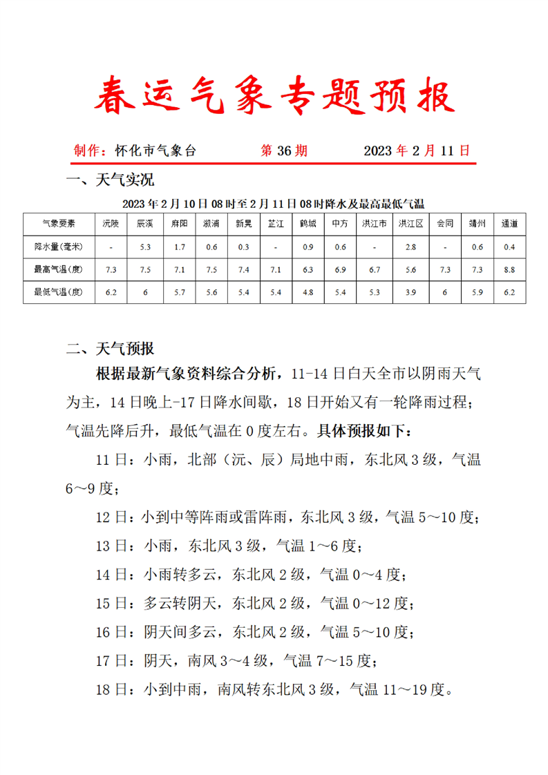 春運(yùn)氣象專題預(yù)報(bào) 第36期