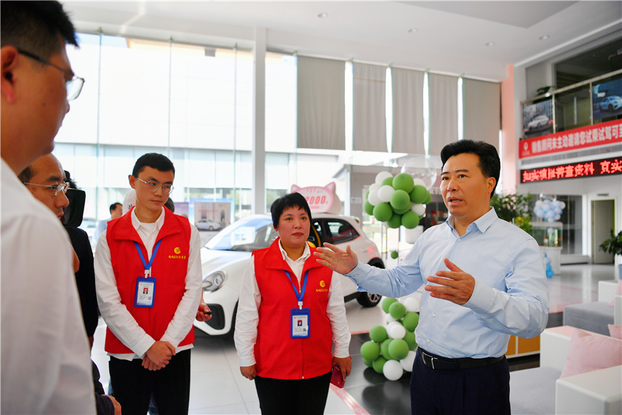 10月16日,市委副書記、市長黎春秋調研第五次全國經(jīng)濟普查工作開展情況。圖為黎春秋在鶴城區(qū)城南街道奧林社區(qū)002普查小區(qū)懷化瑞宏汽車銷售服務有限公司調研“五經(jīng)普”開展情況。(懷化日報全媒體記者 張卓 攝)