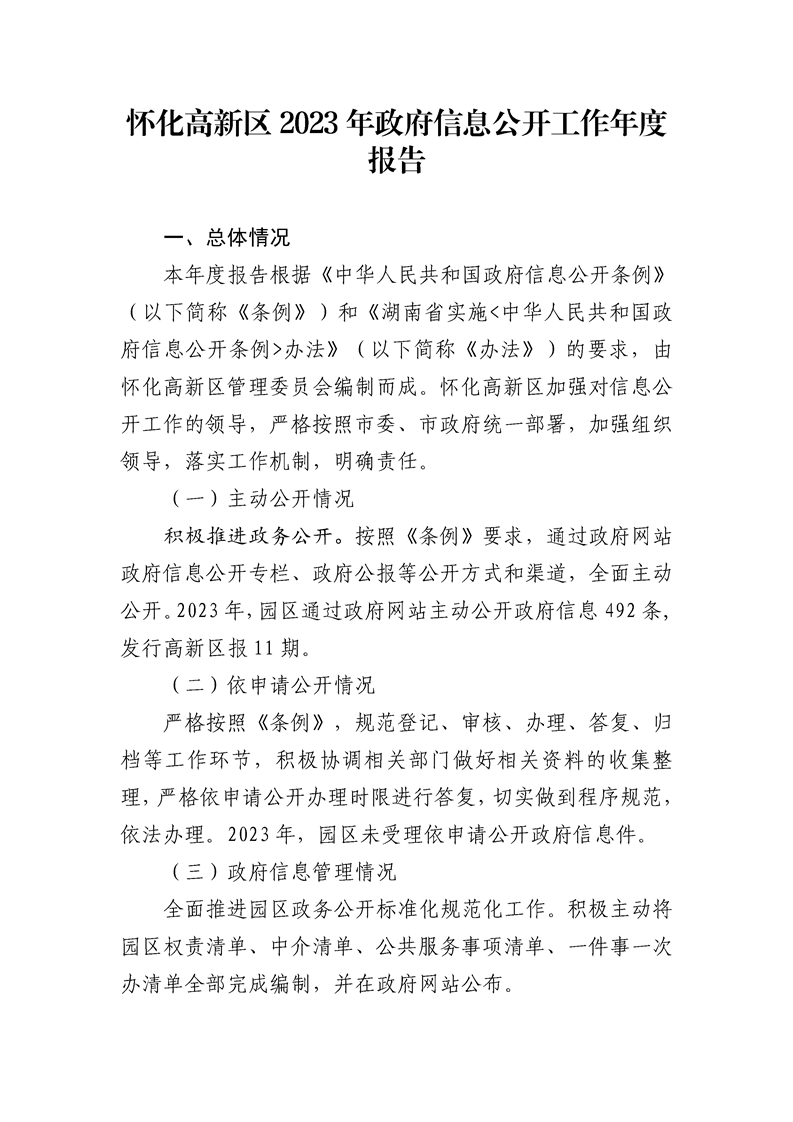 懷化高新區(qū)2023年政府信息公開(kāi)工作年度報(bào)告