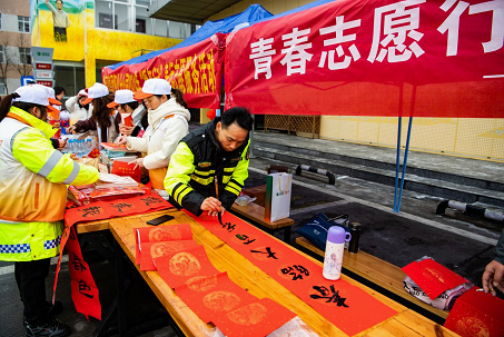 圖6“路燈”志愿者在寫春聯(lián)(田文國 圖)