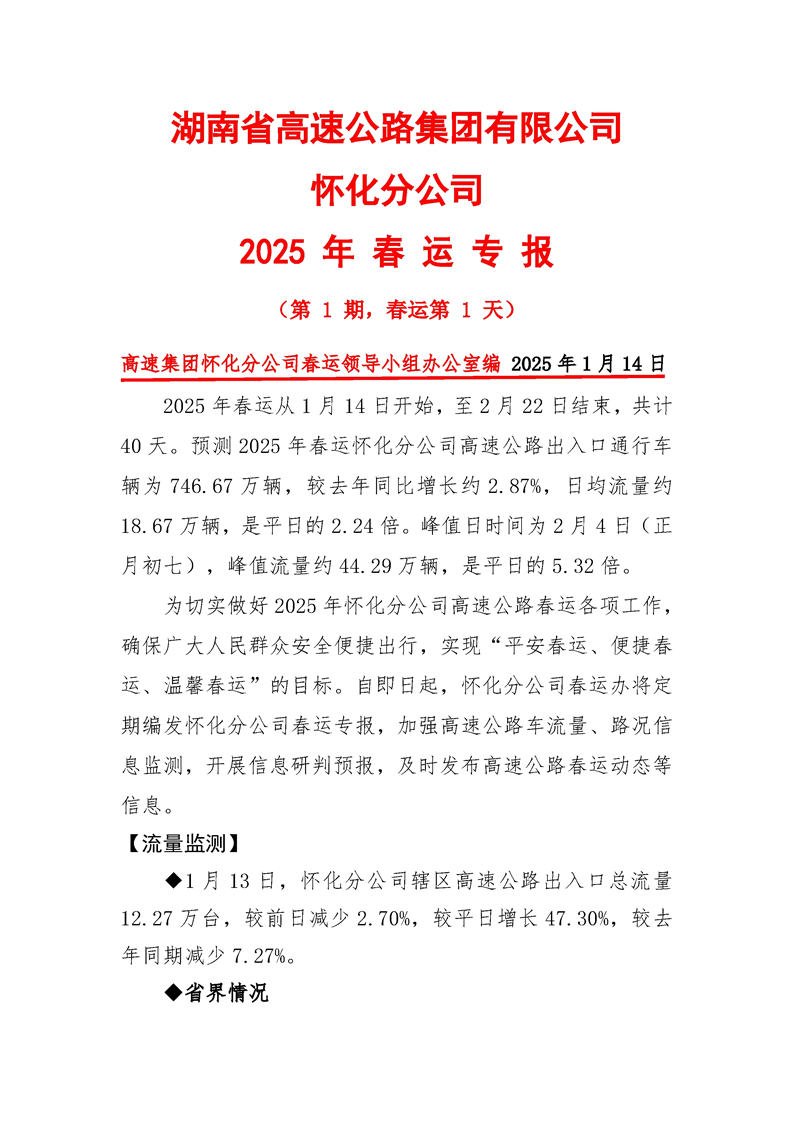 2025年懷化分公司春運(yùn)專報(bào)-第1期