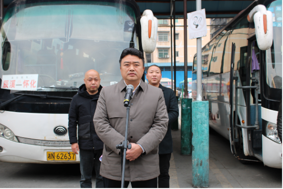 儀式伊始,縣交通運輸局副局長歐建興同志就春運期間各項工作的組織、協(xié)調(diào)、調(diào)度以及督查等關(guān)鍵環(huán)節(jié)進行了全面且深入的發(fā)言,為后續(xù)工作的有序開展明確了方向與重點。緊接著,駕駛員代表粟丁權(quán)同志,作為奮戰(zhàn)在春運一線的從業(yè)者,以質(zhì)樸而堅定的話語表達了對安全駕駛、優(yōu)質(zhì)服務(wù)的承諾;湘運公司經(jīng)理左有軍同志則從企業(yè)管理的宏觀視角,闡述了企業(yè)全力保障春運安全與服務(wù)質(zhì)量的決心與舉措,彰顯了企業(yè)在春運工作中的擔(dān)當(dāng)。隨后,辰溪縣縣委常委、政法委書記黃明畢同志莊重宣布2025年辰溪縣春運正式啟動。