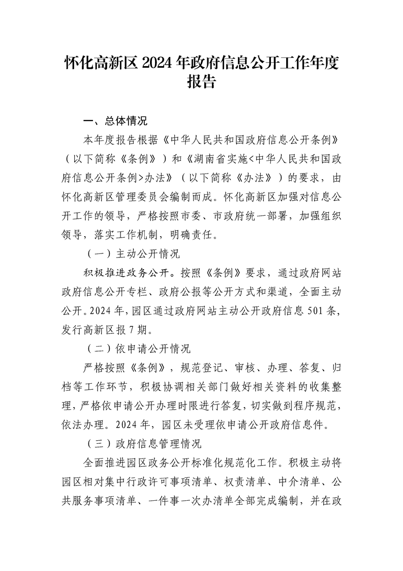 懷化高新區(qū)2024年政府信息公開工作年度報(bào)告