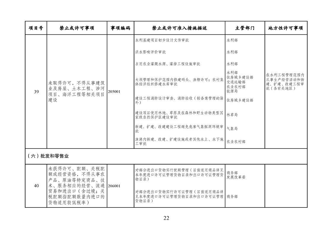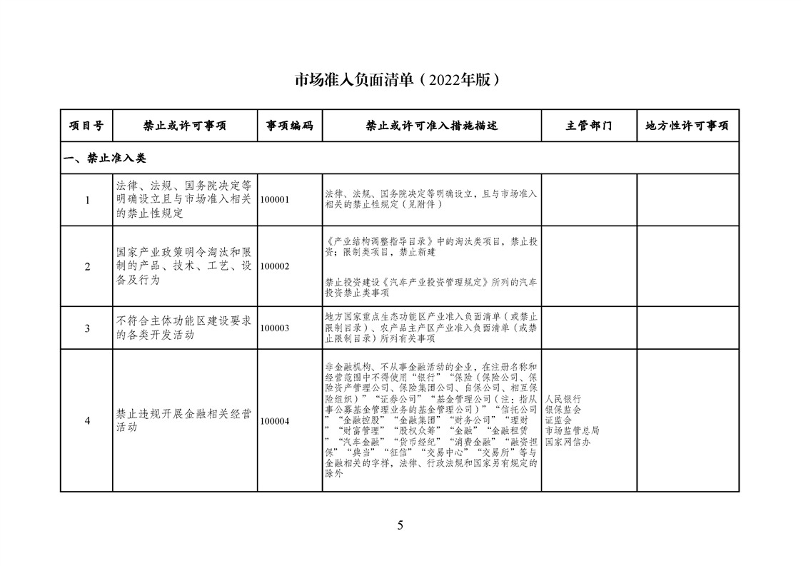 市場(chǎng)準(zhǔn)入負(fù)面清單2022年版